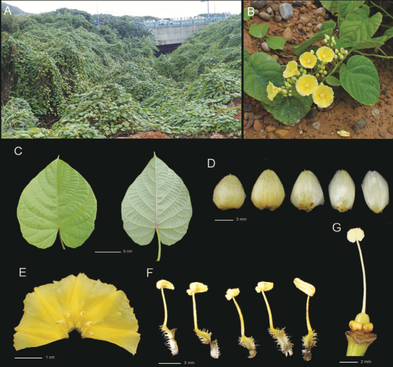 Keywords: Convolvulaceae, Decalobanthus, invasive species, Merremia, Taiwan